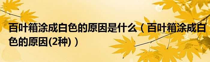 关于百叶箱涂成白色的原因是什么,百叶箱涂成白色的原因(2种)这个很多人还不知道,今天菲菲来为大家解答以上的问题,现在让我们一起来看看吧!