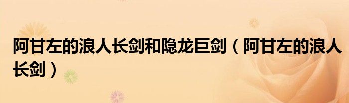 关于阿甘左的浪人长剑和隐龙巨剑,阿甘左的浪人长剑这个很多人还不知道,今天菲菲来为大家解答以上的问题,现在让我们一起来看看吧!