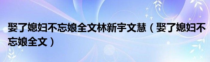 娶了媳妇不忘娘全文林新宇文慧(娶了媳妇不忘娘全文)