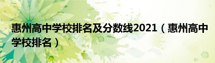 关于惠州高中学校排名及分数线2021,惠州高中学校排名这个很多人还不知道,今天菲菲来为大家解答以上的问题,现在让我们一起来看看吧!