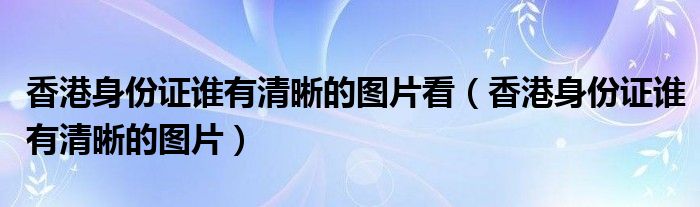 香港身份证谁有清晰的图片看(香港身份证谁有清晰的图片)