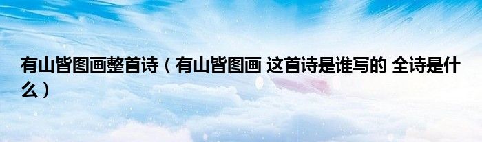 关于有山皆图画整首诗,有山皆图画 这首诗是谁写的 全诗是什么这个很多人还不知道,今天菲菲来为大家解答以上的问题,现在让我们一起来看看吧!
