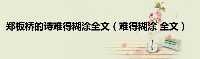 关于郑板桥的诗难得糊涂全文,难得糊涂 全文这个很多人还不知道,今天菲菲来为大家解答以上的问题,现在让我们一起来看看吧!