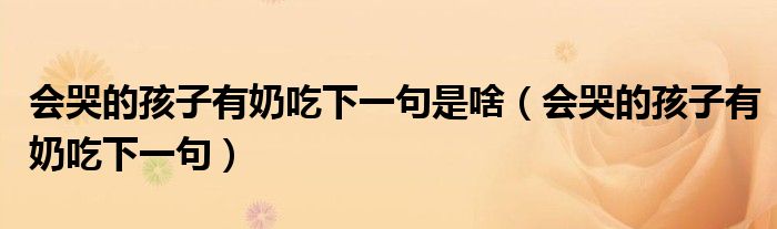 关于会哭的孩子有奶吃下一句是啥,会哭的孩子有奶吃下一句这个很多人还不知道,今天菲菲来为大家解答以上的问题,现在让我们一起来看看吧!