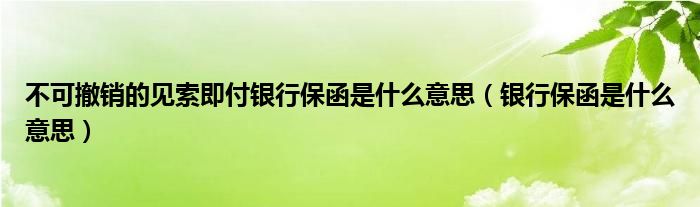 关于不可撤销的见索即付银行保函是什么意思,银行保函是什么意思这个很多人还不知道,今天菲菲来为大家解答以上的问题,现在让我们一起来看看吧!