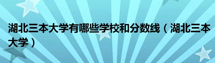 关于湖北三本大学有哪些学校和分数线,湖北三本大学这个很多人还不知道,今天菲菲来为大家解答以上的问题,现在让我们一起来看看吧!