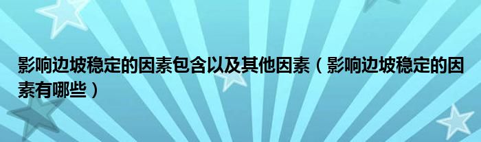 关于影响边坡稳定的因素包含以及其他因素,影响边坡稳定的因素有哪些这个很多人还不知道,今天菲菲来为大家解答以上的问题,现在让我们一起来看看吧!