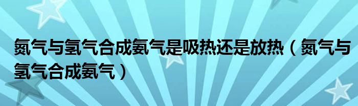 关于氮气与氢气合成氨气是吸热还是放热,氮气与氢气合成氨气这个很多人还不知道,今天菲菲来为大家解答以上的问题,现在让我们一起来看看吧!