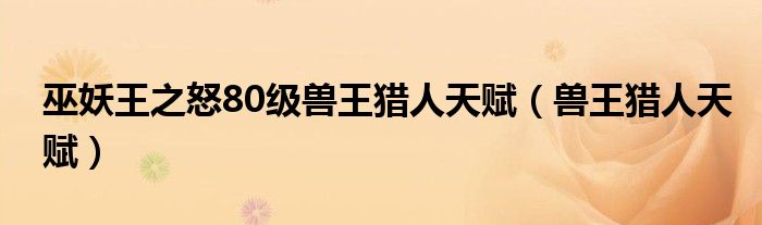 关于巫妖王之怒80级兽王猎人天赋,兽王猎人天赋这个很多人还不知道,今天菲菲来为大家解答以上的问题,现在让我们一起来看看吧!