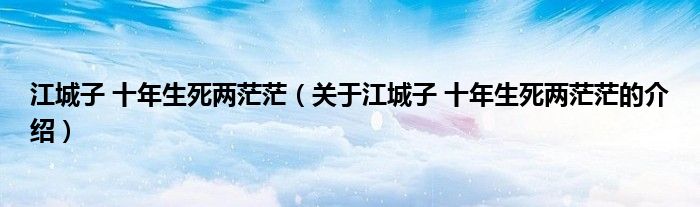 江城子 十年生死两茫茫(关于江城子 十年生死两茫茫的介绍)