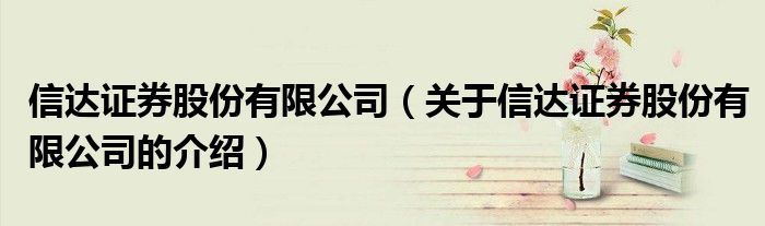 大家好,今天小乐来为大家解答以上的问题。信达证券股份有限公司,关于信达证券股份有限公司的介绍很多人还不知道,现在让我们一起来看看吧!