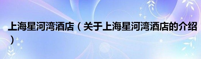 1、上海星河湾酒店是有星河湾地产控股有限公司投资兴建的按白金五星级标准全套房休闲商务酒店,位于上海闵行区,都会路3799号。