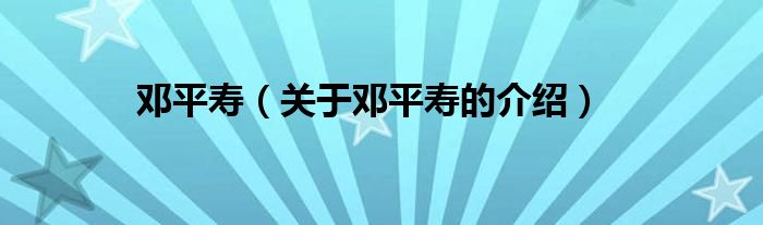 大家好,今天小乐来为大家解答以上的问题。邓平寿,关于邓平寿的介绍很多人还不知道,现在让我们一起来看看吧!