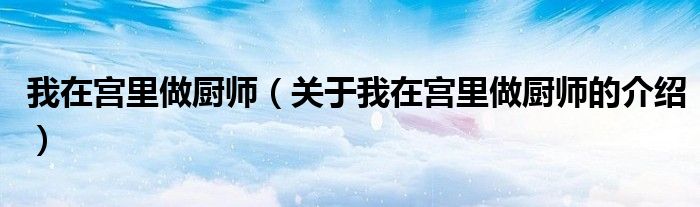 我在宫里做厨师(关于我在宫里做厨师的介绍)