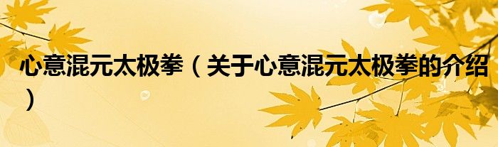 大家好,今天小乐来为大家解答以上的问题。心意混元太极拳,关于心意混元太极拳的介绍很多人还不知道,现在让我们一起来看看吧!