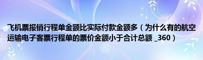 关于飞机票报销行程单金额比实际付款金额多,为什么有的航空运输电子客票行程单的票价金额小于合计总额 _360这个很多人还不知道,今天菲菲来为大家解答以上的问题,现在让我们一起来看看吧!