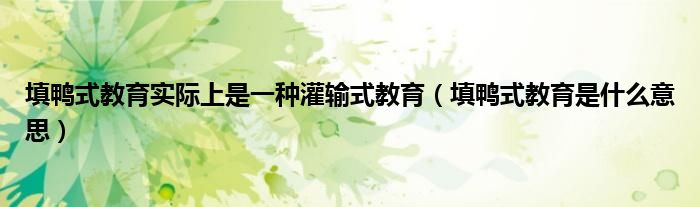 关于填鸭式教育实际上是一种灌输式教育,填鸭式教育是什么意思这个很多人还不知道,今天菲菲来为大家解答以上的问题,现在让我们一起来看看吧!