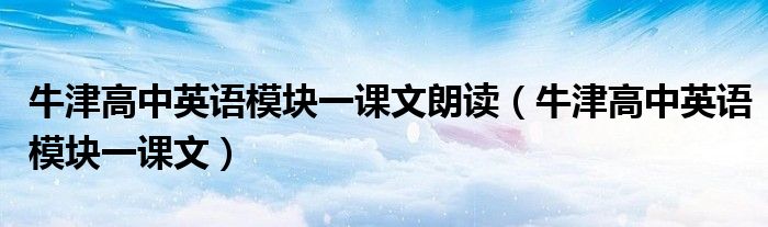 关于牛津高中英语模块一课文朗读,牛津高中英语模块一课文这个很多人还不知道,今天菲菲来为大家解答以上的问题,现在让我们一起来看看吧!