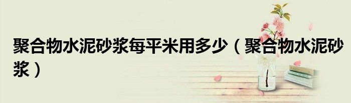 关于聚合物水泥砂浆每平米用多少,聚合物水泥砂浆这个很多人还不知道,今天菲菲来为大家解答以上的问题,现在让我们一起来看看吧!