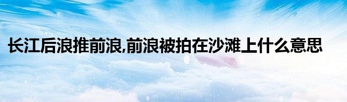 关于长江后浪推前浪,前浪被拍在沙滩上什么意思这个很多人还不知道,今天菲菲来为大家解答以上的问题,现在让我们一起来看看吧!
