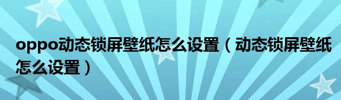大家好,小晋来为大家解答以下问题,关于oppo动态锁屏壁纸怎么设置,动态锁屏壁纸怎么设置很多人还不知道,今天让我们一起来看看吧!