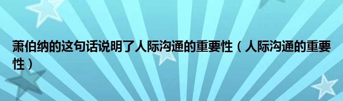 萧伯纳的这句话说明了人际沟通的重要性(人际沟通的重要性)