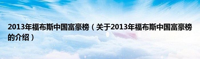 2013年福布斯中国富豪榜(关于2013年福布斯中国富豪榜的介绍)