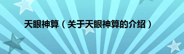 大家好,今天小乐来为大家解答以上的问题。天眼神算,关于天眼神算的介绍很多人还不知道,现在让我们一起来看看吧!