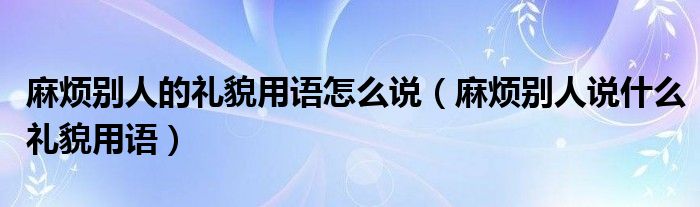 关于麻烦别人的礼貌用语怎么说,麻烦别人说什么礼貌用语这个很多人还不知道,今天菲菲来为大家解答以上的问题,现在让我们一起来看看吧!