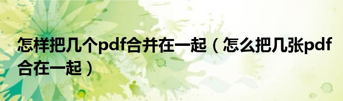 怎样把几个pdf合并在一起(怎么把几张pdf合在一起)