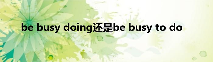 关于be busy doing还是be busy to do这个很多人还不知道,今天菲菲来为大家解答以上的问题,现在让我们一起来看看吧!