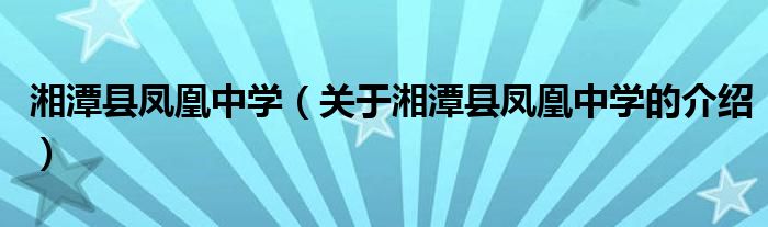 湘潭县凤凰中学(关于湘潭县凤凰中学的介绍)