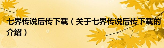大家好,今天小乐来为大家解答以上的问题。七界传说后传下载,关于七界传说后传下载的介绍很多人还不知道,现在让我们一起来看看吧!