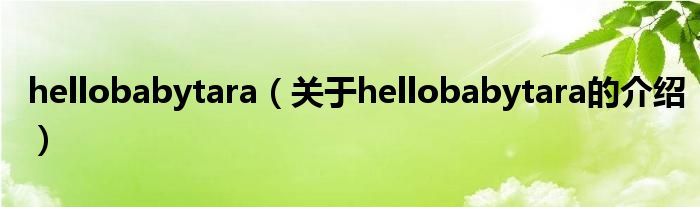 大家好,今天小乐来为大家解答以上的问题。hellobabytara,关于hellobabytara的介绍很多人还不知道,现在让我们一起来看看吧!