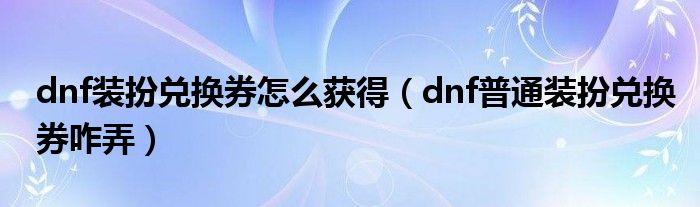 关于dnf装扮兑换券怎么获得,dnf普通装扮兑换券咋弄这个很多人还不知道,今天菲菲来为大家解答以上的问题,现在让我们一起来看看吧!