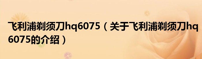大家好,今天小乐来为大家解答以上的问题。飞利浦剃须刀hq6075,关于飞利浦剃须刀hq6075的介绍很多人还不知道,现在让我们一起来看看吧!