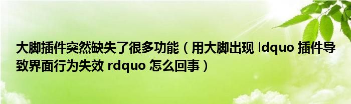 大脚插件突然缺失了很多功能(用大脚出现 ldquo 插件导致界面行为失效 rdquo 怎么回事)
