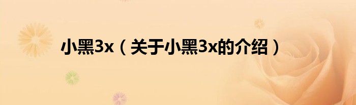 小黑3x(关于小黑3x的介绍)
