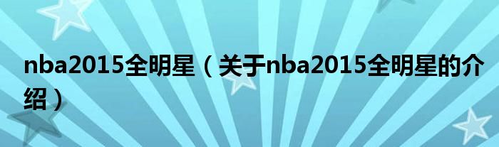 大家好,今天小乐来为大家解答以上的问题。nba2015全明星,关于nba2015全明星的介绍很多人还不知道,现在让我们一起来看看吧!