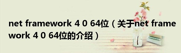 大家好,今天小乐来为大家解答以上的问题。net framework 4 0 64位,关于net framework 4 0 64位的介绍很多人还不知道,现在让我们一起来看看吧!