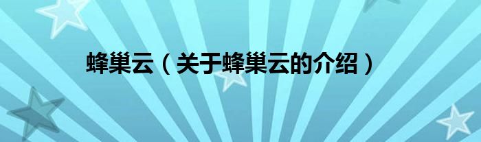 大家好,今天小乐来为大家解答以上的问题。蜂巢云,关于蜂巢云的介绍很多人还不知道,现在让我们一起来看看吧!