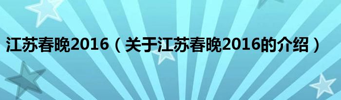 江苏春晚2016(关于江苏春晚2016的介绍)
