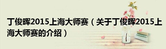 丁俊晖2015上海大师赛(关于丁俊晖2015上海大师赛的介绍)