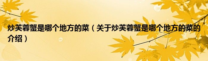 大家好,今天小乐来为大家解答以上的问题。炒芙蓉蟹是哪个地方的菜,关于炒芙蓉蟹是哪个地方的菜的介绍很多人还不知道,现在让我们一起来看看吧!