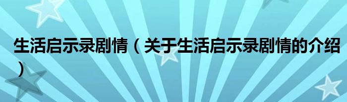 生活启示录剧情(关于生活启示录剧情的介绍)