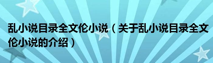 乱小说目录全文伦小说(关于乱小说目录全文伦小说的介绍)