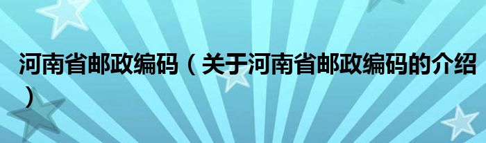 大家好,小都来为大家解答以上的问题。河南省邮政编码,关于河南省邮政编码的介绍很多人还不知道,现在让我们一起来看看吧!