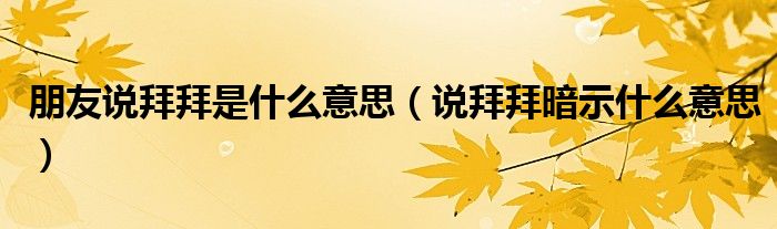 大家好,小晋来为大家解答以下问题,关于朋友说拜拜是什么意思,说拜拜暗示什么意思很多人还不知道,今天让我们一起来看看吧!