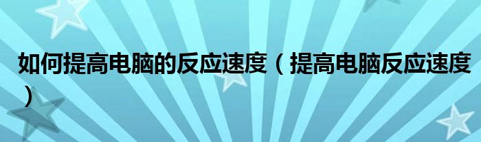 大家好,雨雨来为大家解答以上问题,如何提高电脑的反应速度,提高电脑反应速度很多人还不知道,现在让我们一起来看看吧!