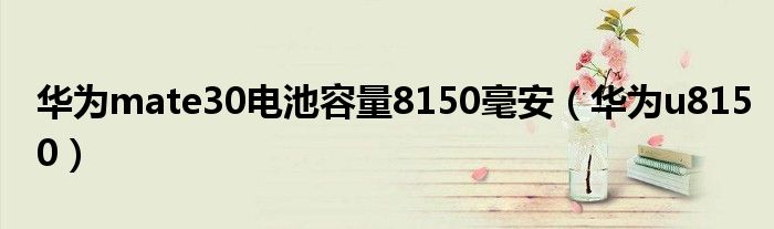 大家好,雨雨来为大家解答以上问题,华为mate30电池容量8150毫安,华为u8150很多人还不知道,现在让我们一起来看看吧!